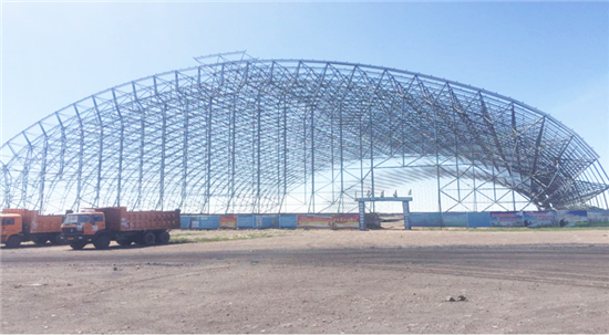本工程地点在头市达尔罕茂明安联合旗满都拉口岸物流园区,位于包头市达茂旗满都拉镇境内中蒙边境757界碑处,处于呼包银经济辐射圈内,距旗政府所在地百灵庙镇136公里,距呼和浩特市289公里,距包头市288公里,是距首府呼和浩特市和包头市最近的陆路口岸。世俱杯app官方入口网架结构形式是双层网壳结构,世俱杯app官方入口网架投影面积24800平方米世俱杯app官方入口网架结构设计合理使用年限 50年,建筑结构安全等级二级。